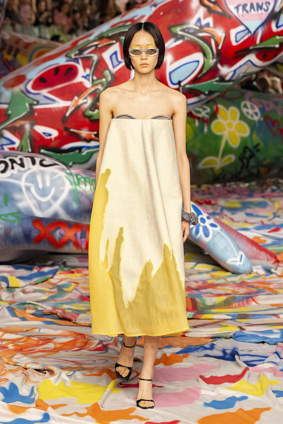 Pentru mine, rochia fara bretele, cu o croiala larga, fie scurta, fie lunga, a devenit o emblema a tendintelor pentru acest sezon. Am observat-o in colectiile toamna-iarna 2025, semnate de designeri precum Carolina Herrera, Diesel sau Roberto Cavalli. Designul ei are o eleganta si o lejeritate cu care rezonez. In plus, nu cred ca isi va pierde usor farmecul, indiferent de ceea ce vor spune trendurile in sezoanele urmatoare.