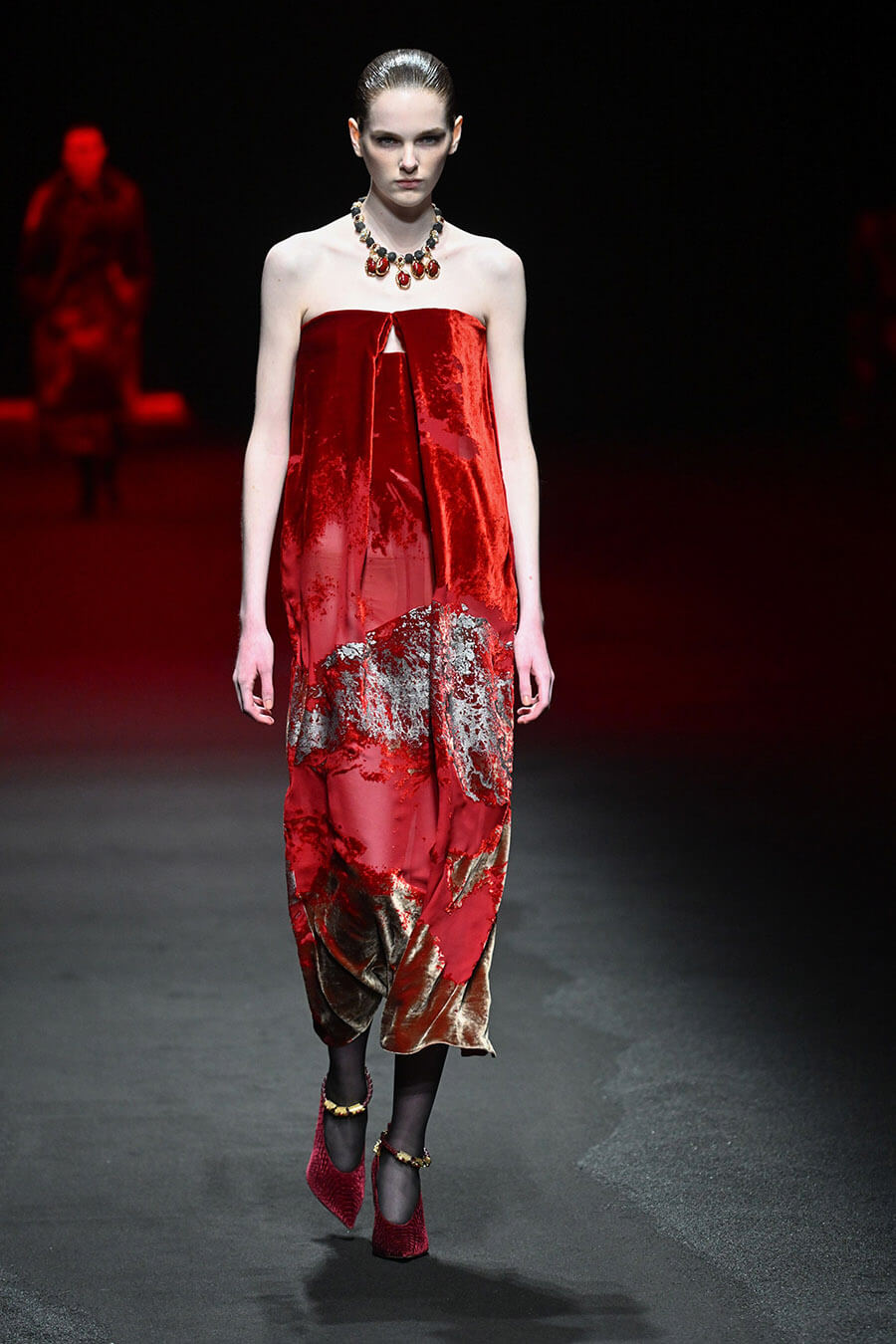 Pentru mood board-ul personal dedicat sezonului toamna-iarna 2025, am ales cinci trenduri care mi-au atras atentia nu doar o data, ci cel putin de trei ori, pe trei podiumuri de prezentare diferite. Este vorba despre pantofii rosii, rochia fara bretele, pantofii purtati cu sosete la vedere, despre combinatia fusta midi si pulover si despre jachetele ce par sa aiba ca punct de pornire clasica parka.