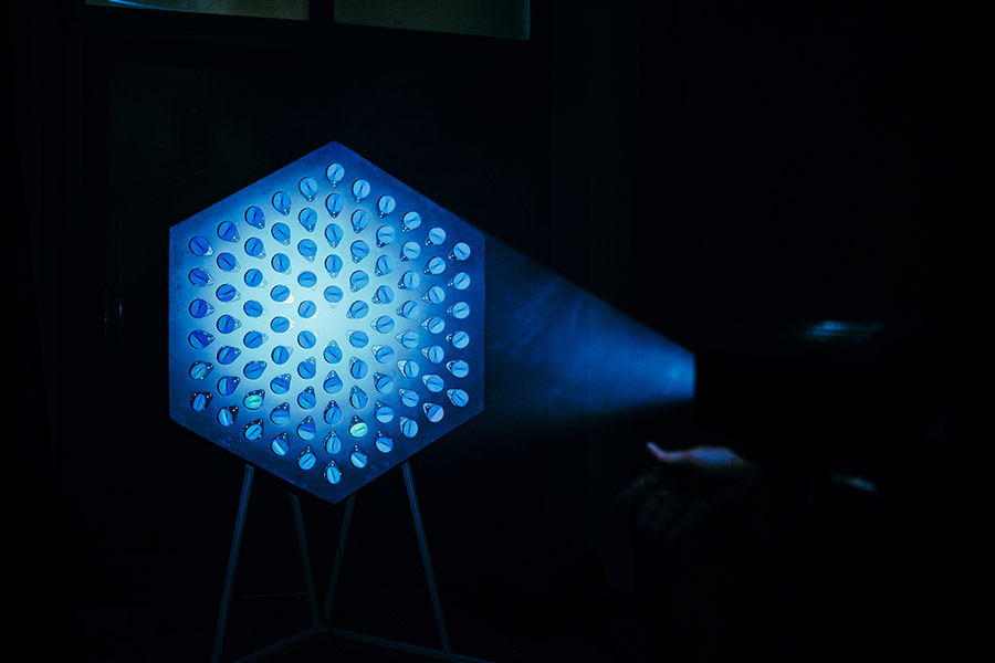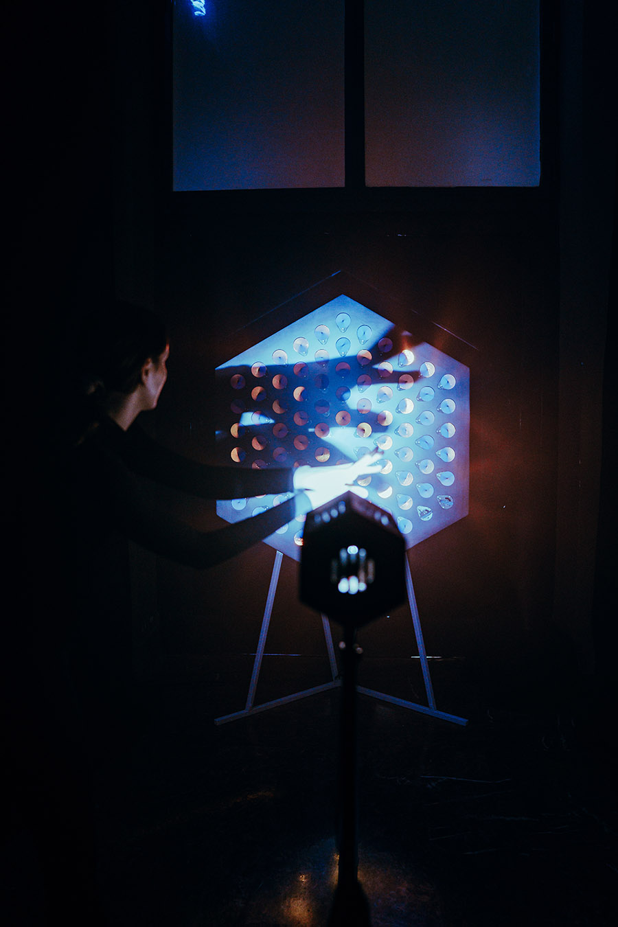 O instalatie interactiva care, atunci umbrele interfereaza cu lumina de pe suprafata ei, aceasta reactioneaza si devine iridescenta